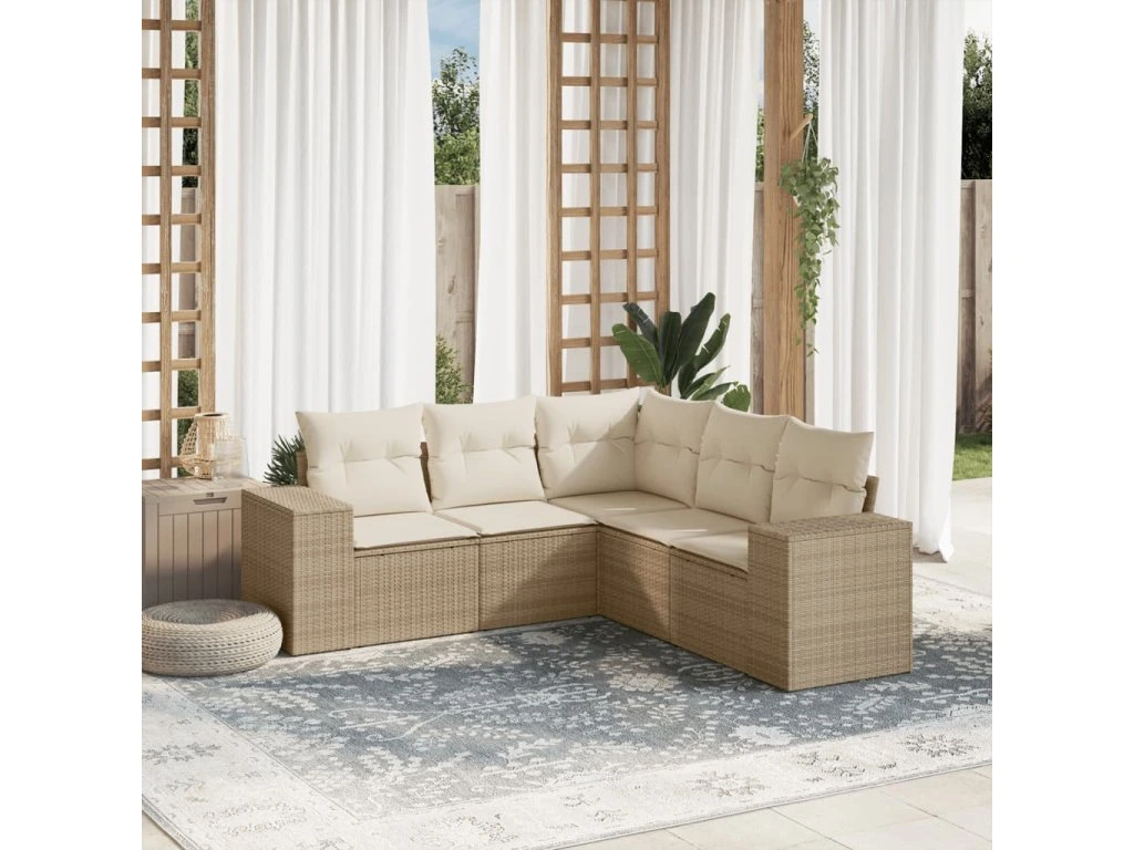 5dílná zahradní sedací souprava s poduškami béžová polyratan 3254885