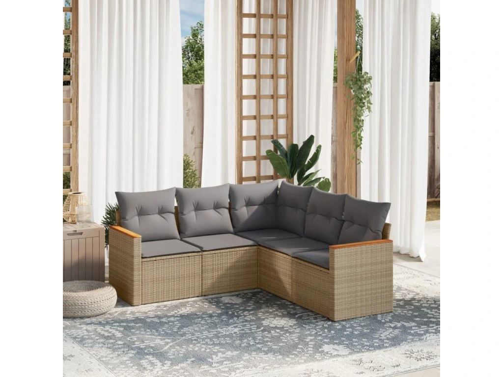 5dílná zahradní sedací souprava s poduškami béžová polyratan 3258363