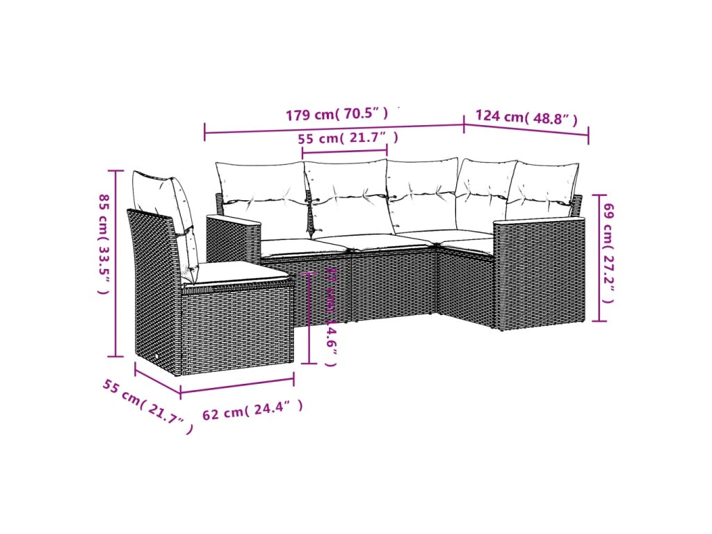 Tato zahradní sedací souprava je dokonalým doplňkem vaší zahrady, terasy nebo dvorku a poskytne vám pohodlné a příjemné místo, kde si můžete povídat s rodinou a přáteli nebo jen tak odpočívat a užívat si pobyt venku.