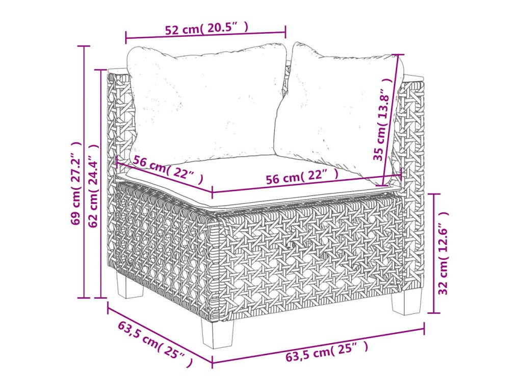 - Rozměry podušky na sedák (rohový díl): 56,5 x 56,5 x 3 cm (Š x H x T)