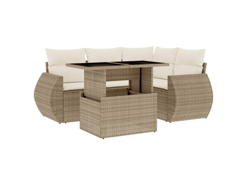 5dílná zahradní sedací souprava s poduškami béžová polyratan 3268508