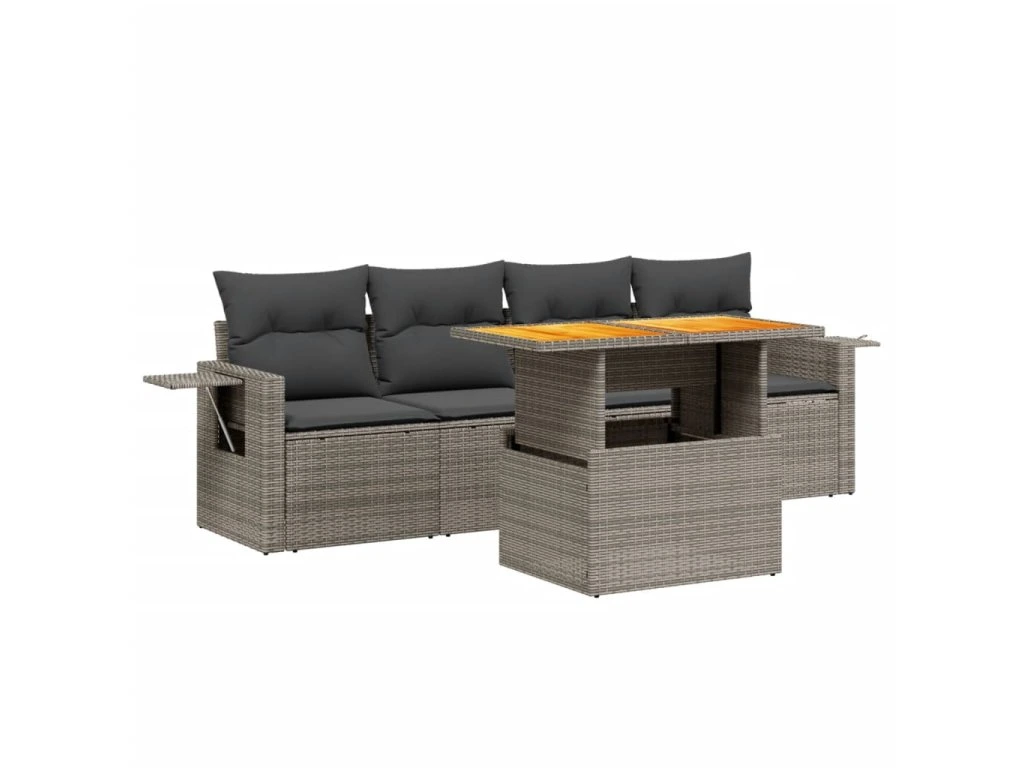 - Materiál: PE ratan, práškově lakovaná ocel, masivní akáciové dřevo s olejovou povrchovou úpravou