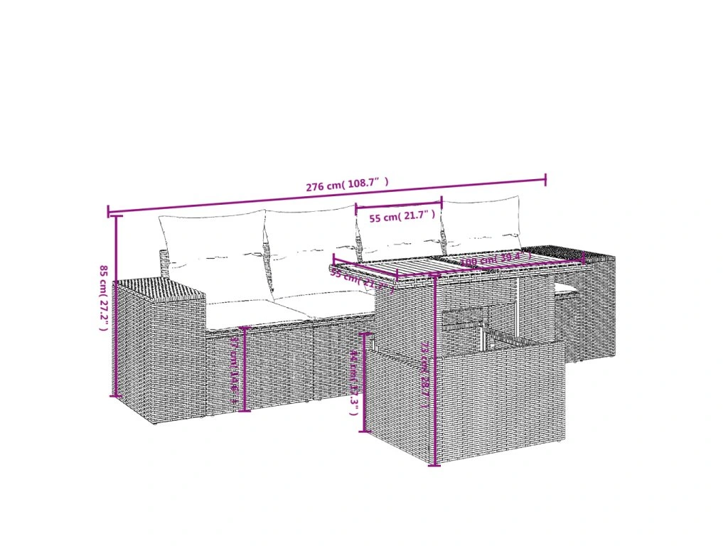 Tato zahradní sedací souprava je dokonalým doplňkem vaší zahrady, terasy nebo dvorku a poskytne vám pohodlné a příjemné místo, kde si můžete povídat s rodinou a přáteli nebo jen tak odpočívat a užívat si pobyt venku.