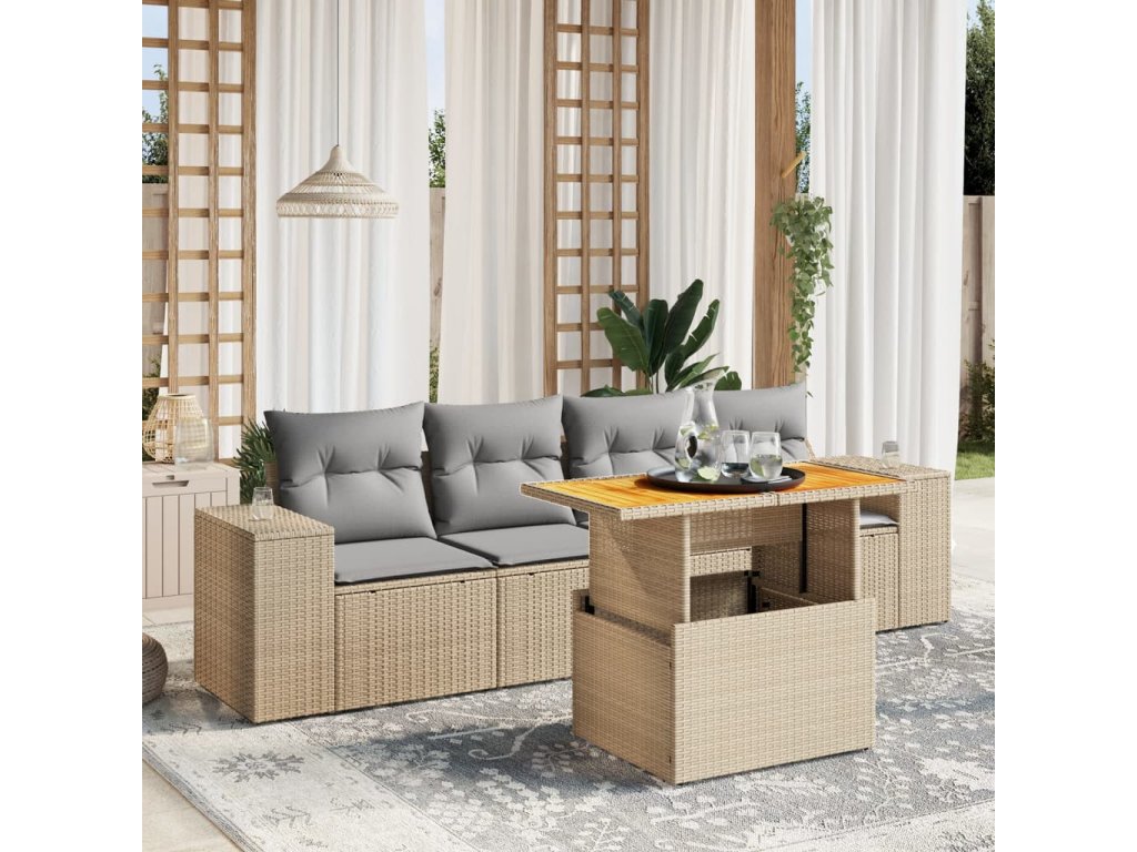 5dílná zahradní sedací souprava s poduškami béžová polyratan 3272515