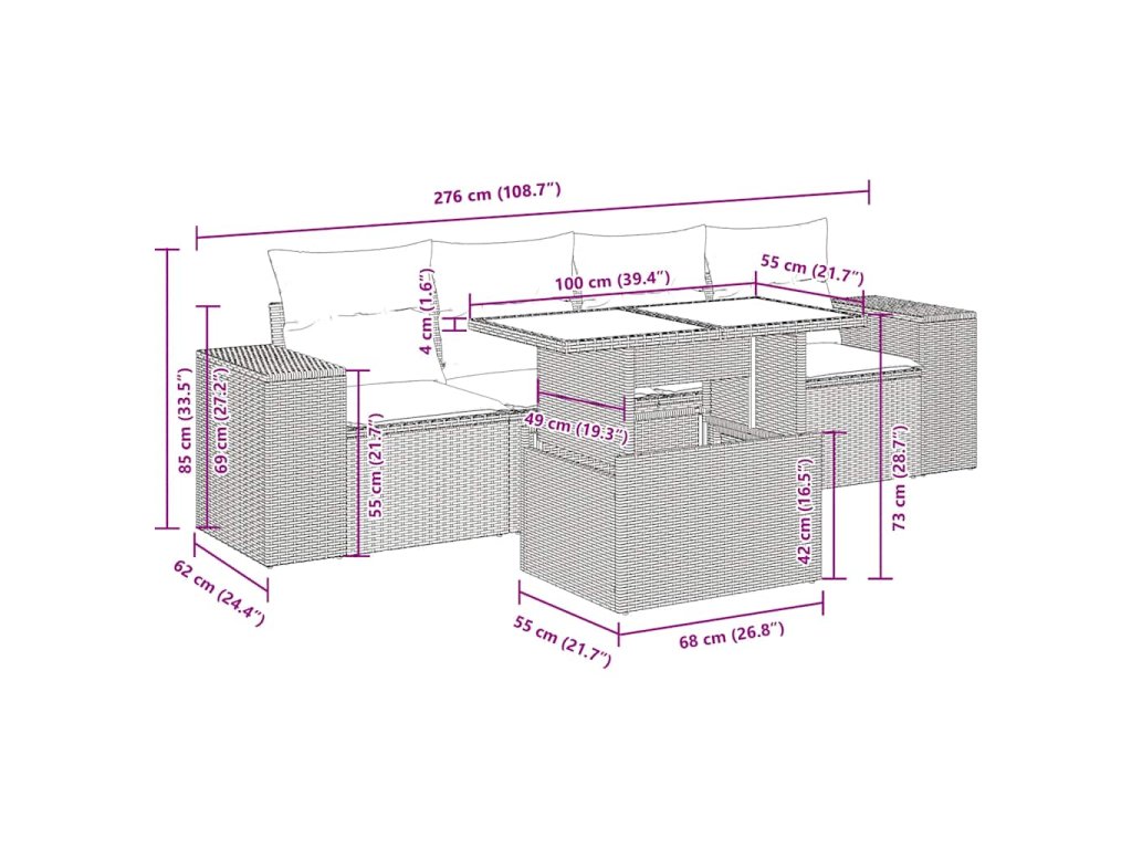 Tato zahradní sedací souprava je dokonalým doplňkem vaší zahrady, terasy nebo dvorku a poskytne vám pohodlné a příjemné místo, kde si můžete povídat s rodinou a přáteli nebo jen tak odpočívat a užívat si pobyt venku.