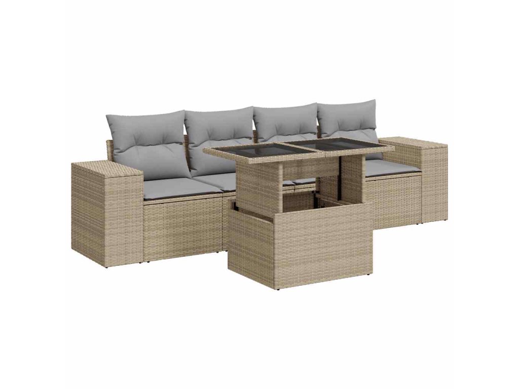 5dílná zahradní sedací souprava s poduškami béžová polyratan 3326720