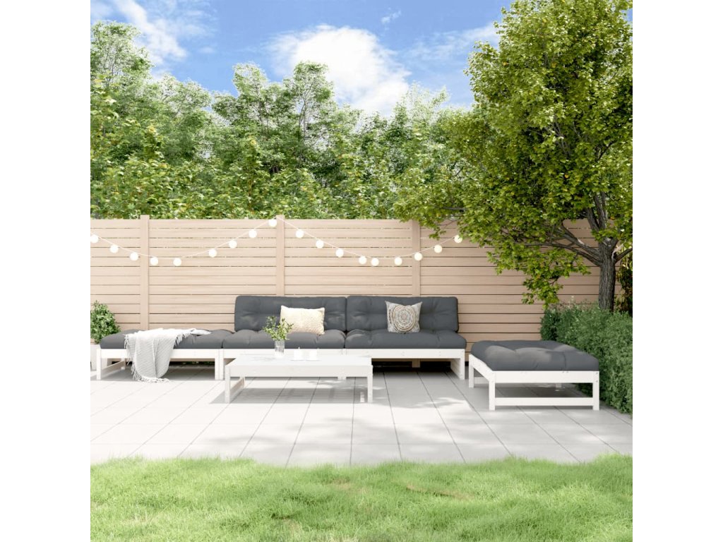 5dílná zahradní sedací souprava s poduškami bílá masivní dřevo 3186117