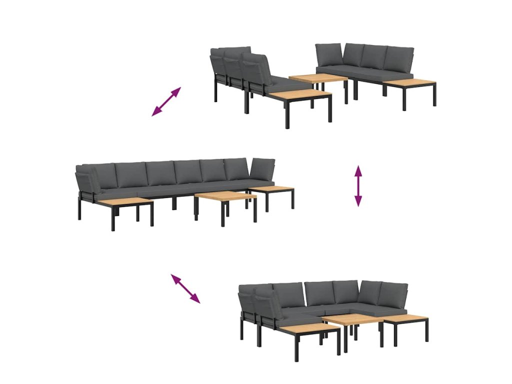 - Modulární design: Tato sada venkovního nábytku se vyznačuje modulární konstrukcí, je tedy zcela flexibilní a lze ji snadno přemisťovat, takže si můžete uspořádat venkovní nábytek dle vašich potřeb.