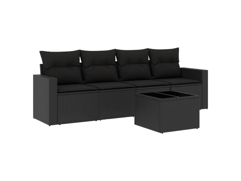 5dílná zahradní sedací souprava s poduškami černá polyratan 3218675