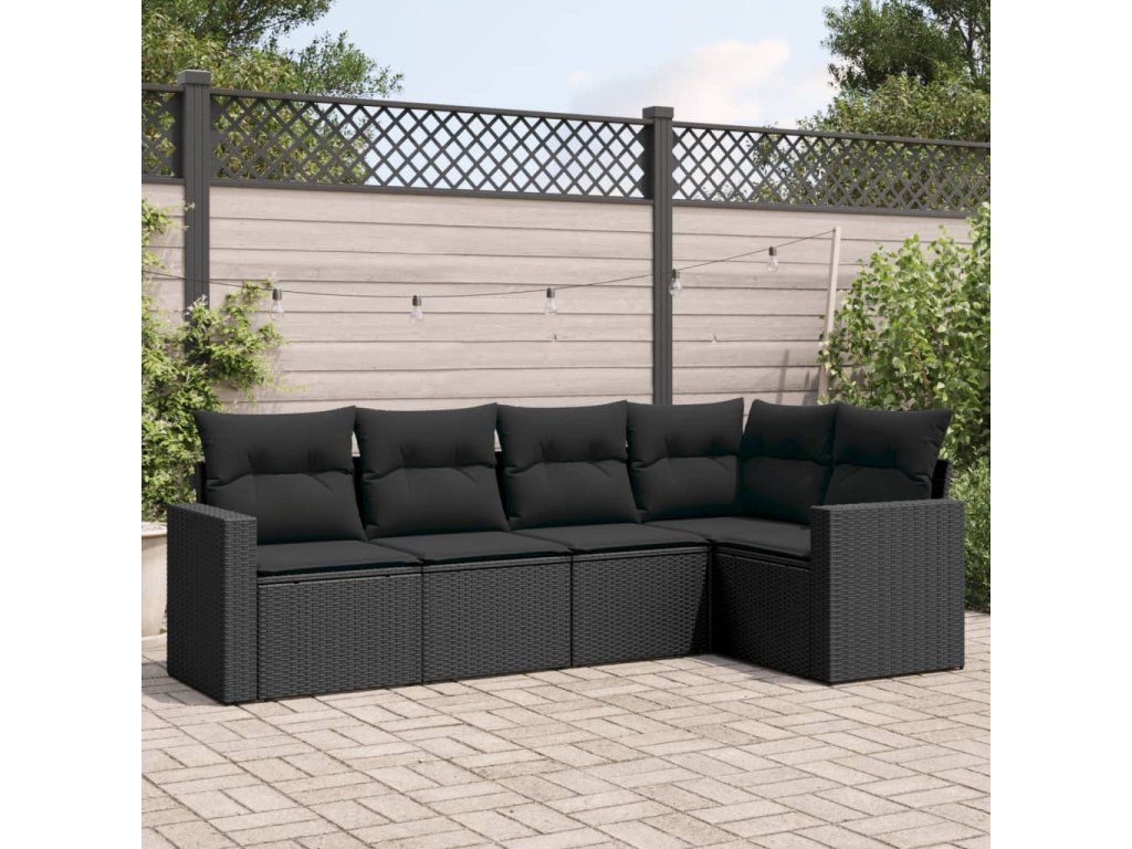 5dílná zahradní sedací souprava s poduškami černá polyratan 3218915