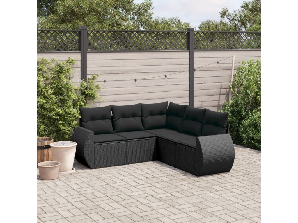 5dílná zahradní sedací souprava s poduškami černá polyratan 3221344