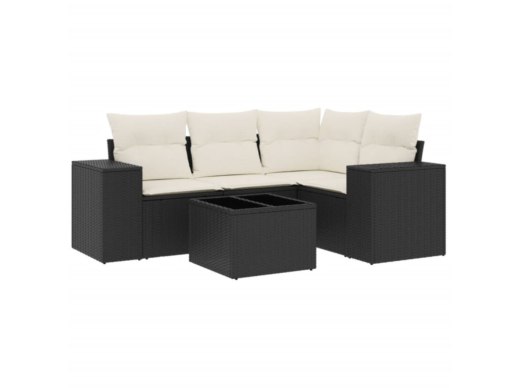 5dílná zahradní sedací souprava s poduškami černá polyratan 3222515