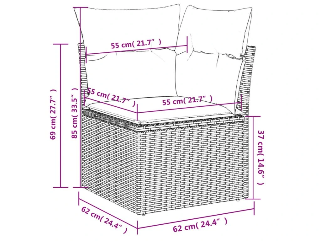 Tato zahradní sedací souprava je dokonalým doplňkem vaší zahrady, terasy nebo dvorku a poskytne vám pohodlné a příjemné místo, kde si můžete povídat s rodinou a přáteli nebo jen tak odpočívat a užívat si pobyt venku.