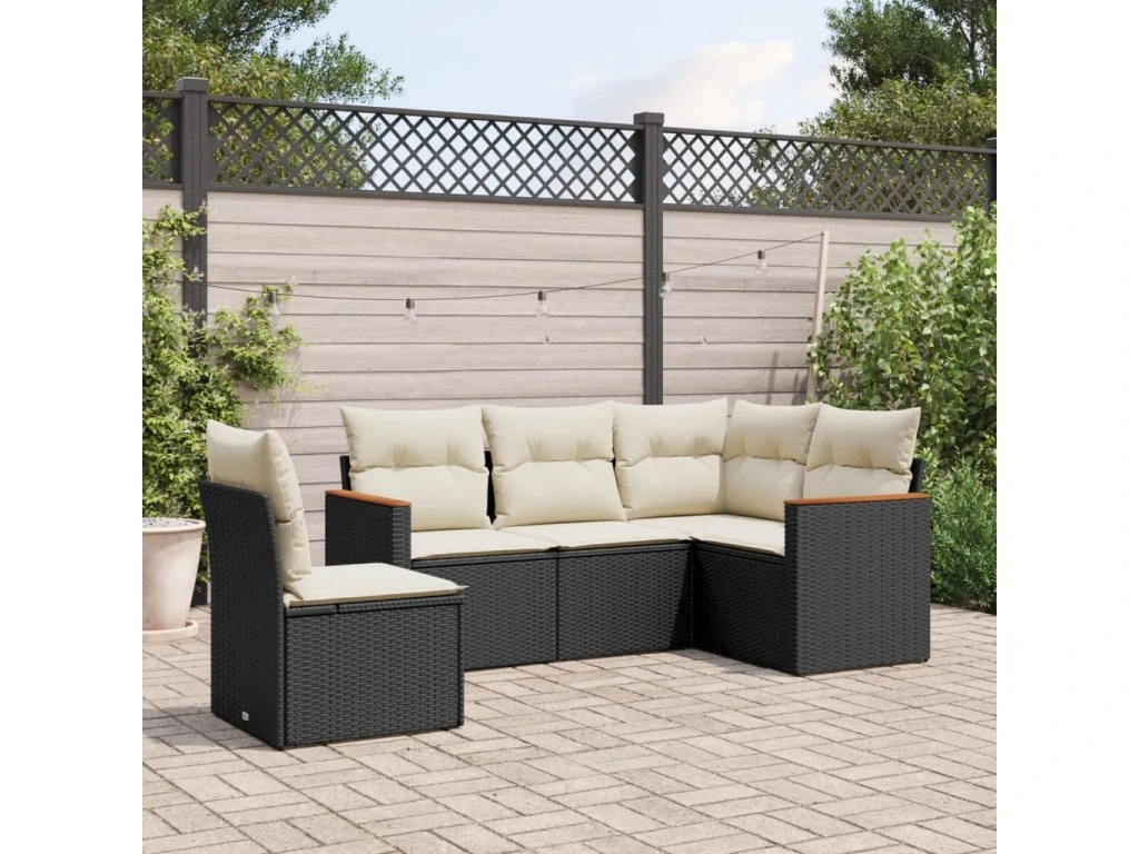 5dílná zahradní sedací souprava s poduškami černá polyratan 3225972