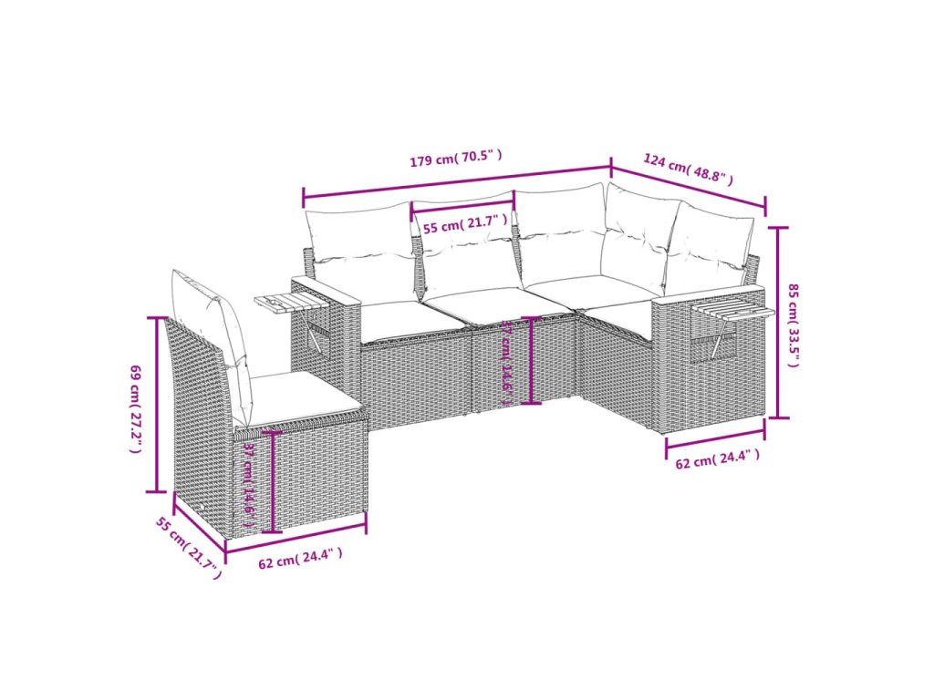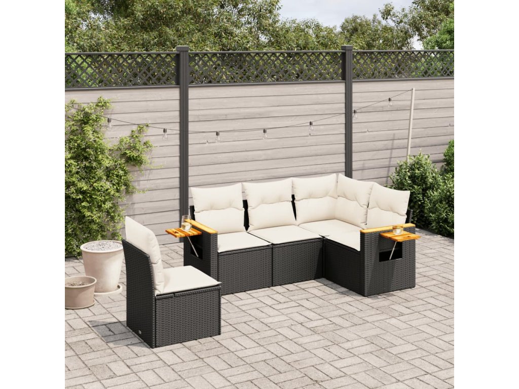 5dílná zahradní sedací souprava s poduškami černá polyratan 3226812