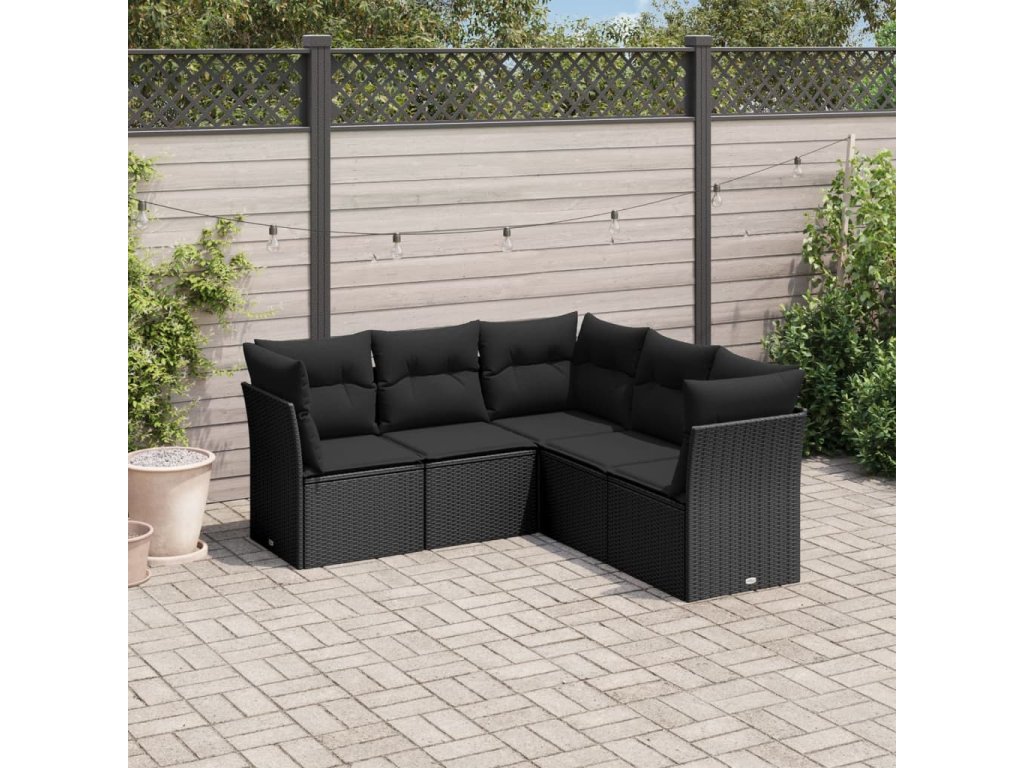 5dílná zahradní sedací souprava s poduškami černá polyratan 3249454