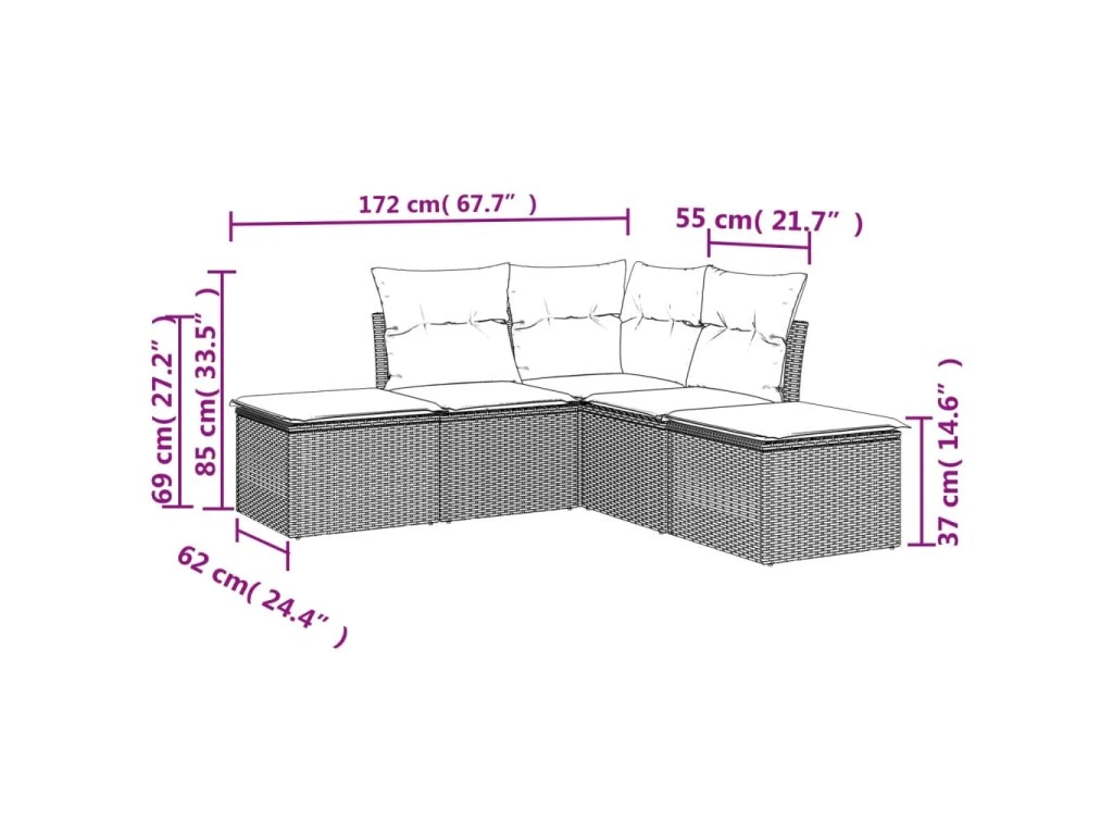 - Celkové rozměry 5místné pohovky: 172 x 172 x 69 cm (Š x H x V)
