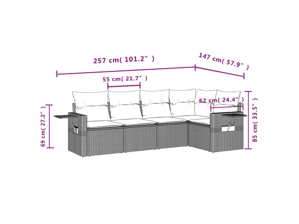 5dílná zahradní sedací souprava s poduškami černá polyratan 3252462