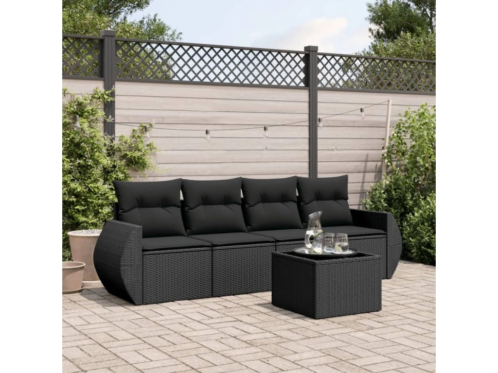 5dílná zahradní sedací souprava s poduškami černá polyratan 3253422
