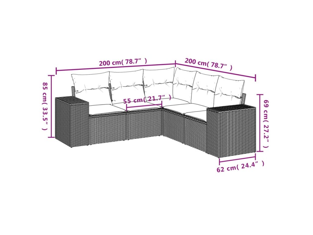 5dílná zahradní sedací souprava s poduškami černá polyratan 3254883
