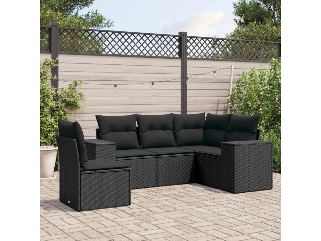 5dílná zahradní sedací souprava s poduškami černá polyratan 3254902