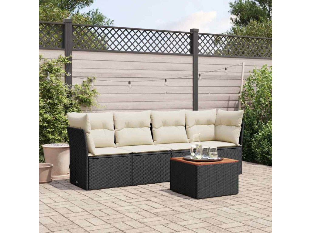 5dílná zahradní sedací souprava s poduškami černá polyratan 3255804