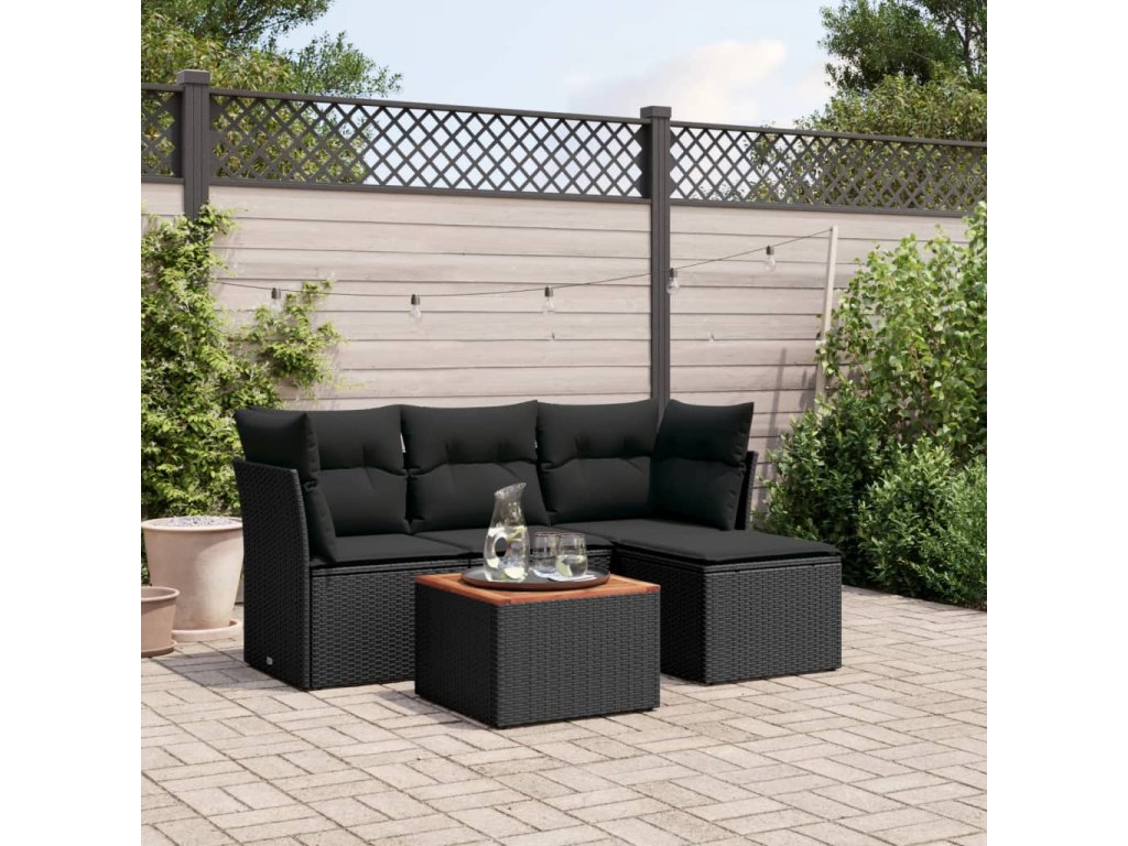 5dílná zahradní sedací souprava s poduškami černá polyratan 3255936