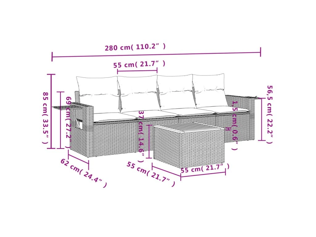 Tato zahradní sedací souprava je dokonalým doplňkem vaší zahrady, terasy nebo dvorku a poskytne vám pohodlné a příjemné místo, kde si můžete povídat s rodinou a přáteli nebo jen tak odpočívat a užívat si pobyt venku.