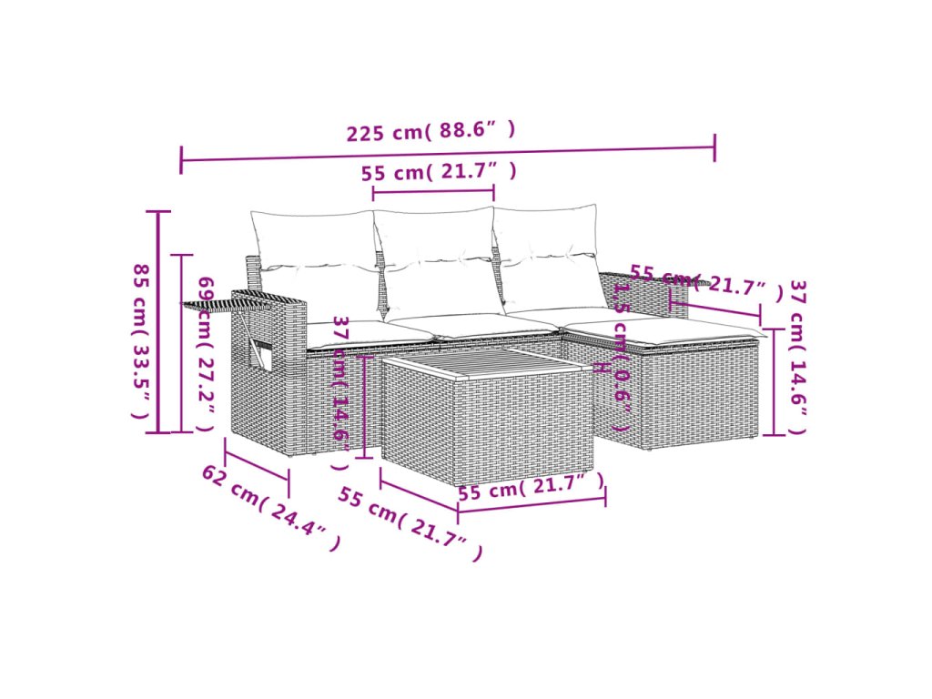 Tato zahradní sedací souprava je dokonalým doplňkem vaší zahrady, terasy nebo dvorku a poskytne vám pohodlné a příjemné místo, kde si můžete povídat s rodinou a přáteli nebo jen tak odpočívat a užívat si pobyt venku.