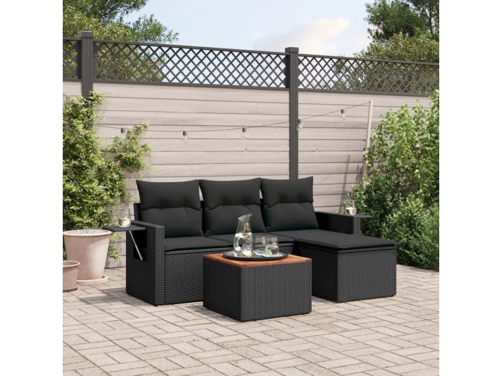 5dílná zahradní sedací souprava s poduškami černá polyratan 3256860
