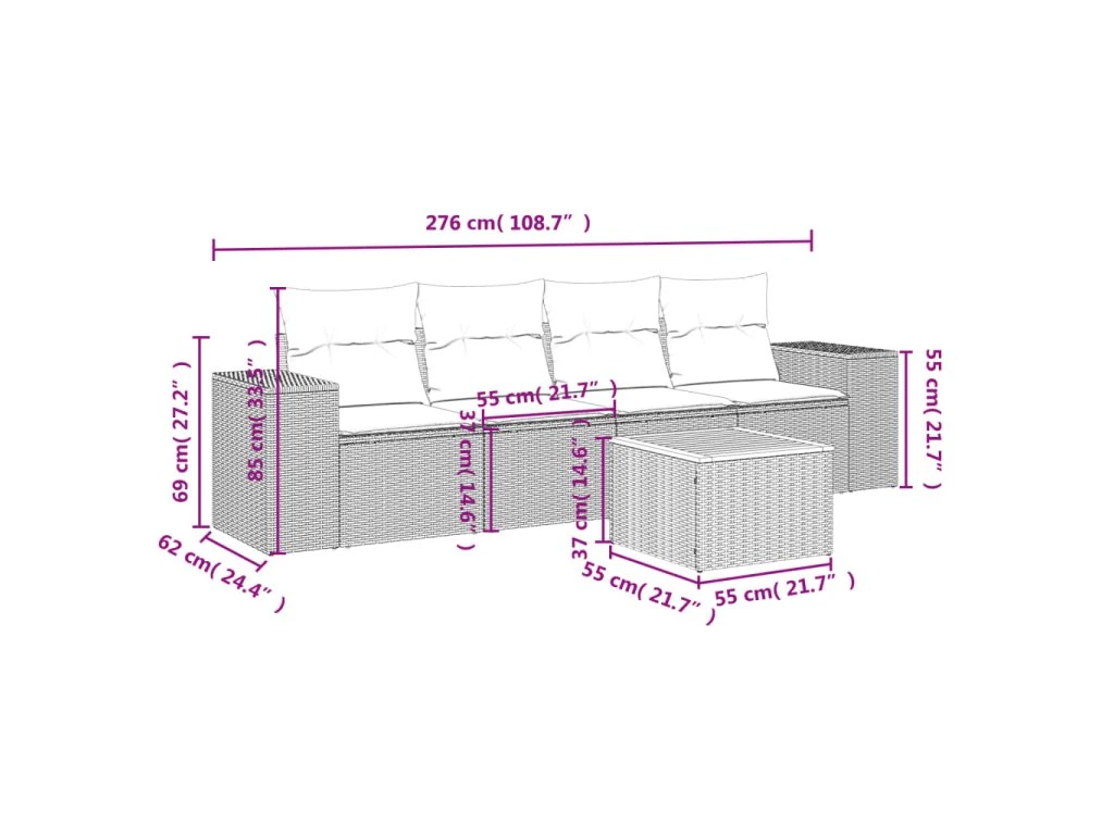 Tato zahradní sedací souprava je dokonalým doplňkem vaší zahrady, terasy nebo dvorku a poskytne vám pohodlné a příjemné místo, kde si můžete povídat s rodinou a přáteli nebo jen tak odpočívat a užívat si pobyt venku.