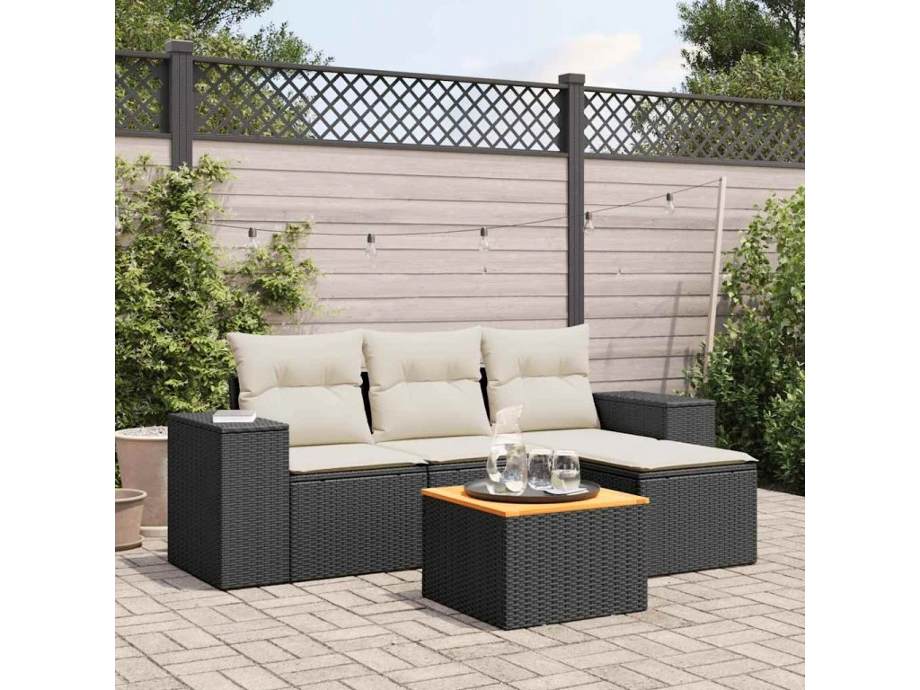 5dílná zahradní sedací souprava s poduškami černá polyratan 3257743