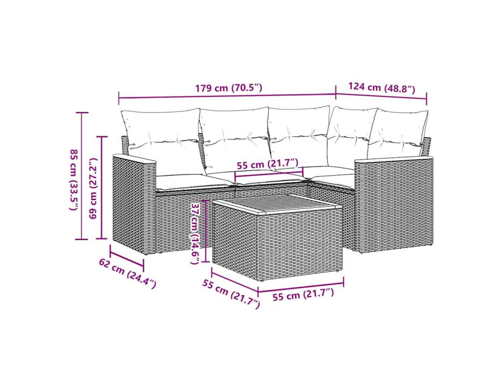 Tato zahradní sedací souprava je dokonalým doplňkem vaší zahrady, terasy nebo dvorku a poskytne vám pohodlné a příjemné místo, kde si můžete povídat s rodinou a přáteli nebo jen tak odpočívat a užívat si pobyt venku.