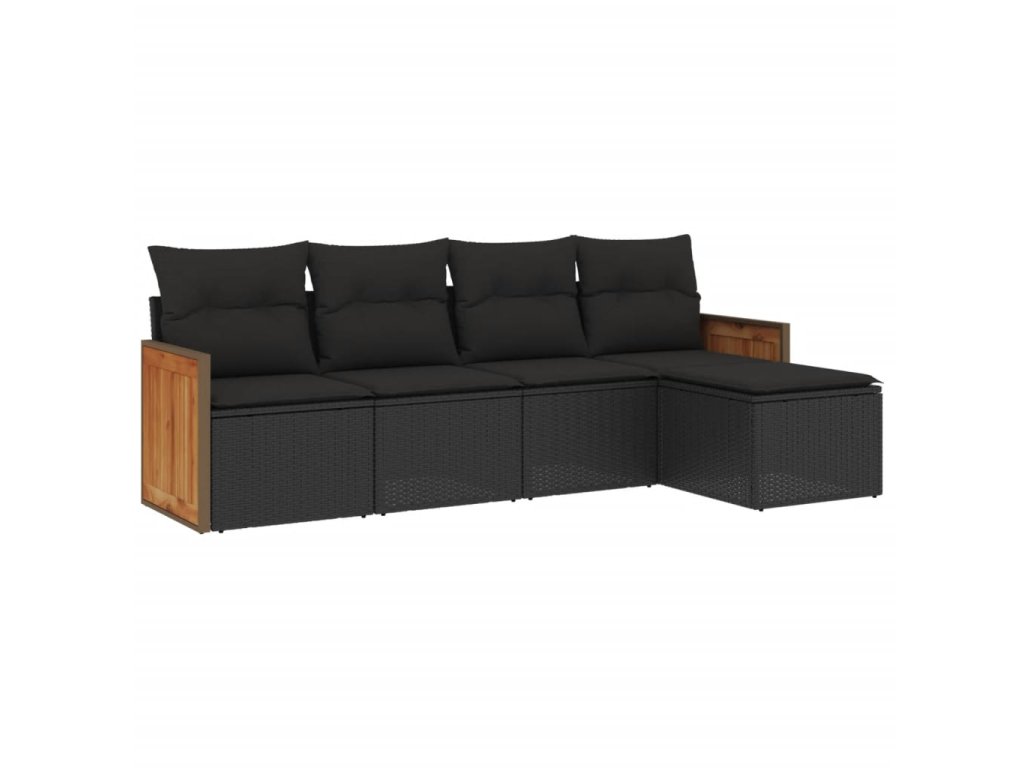 5dílná zahradní sedací souprava s poduškami černá polyratan 3259997
