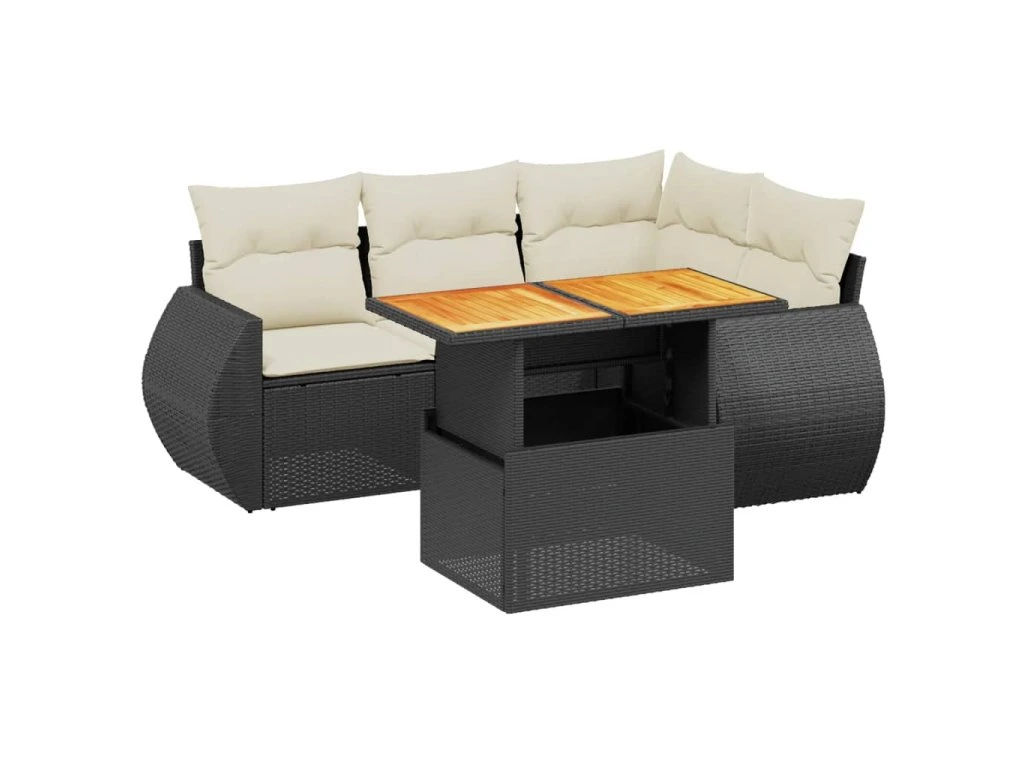5dílná zahradní sedací souprava s poduškami černá polyratan 3272176