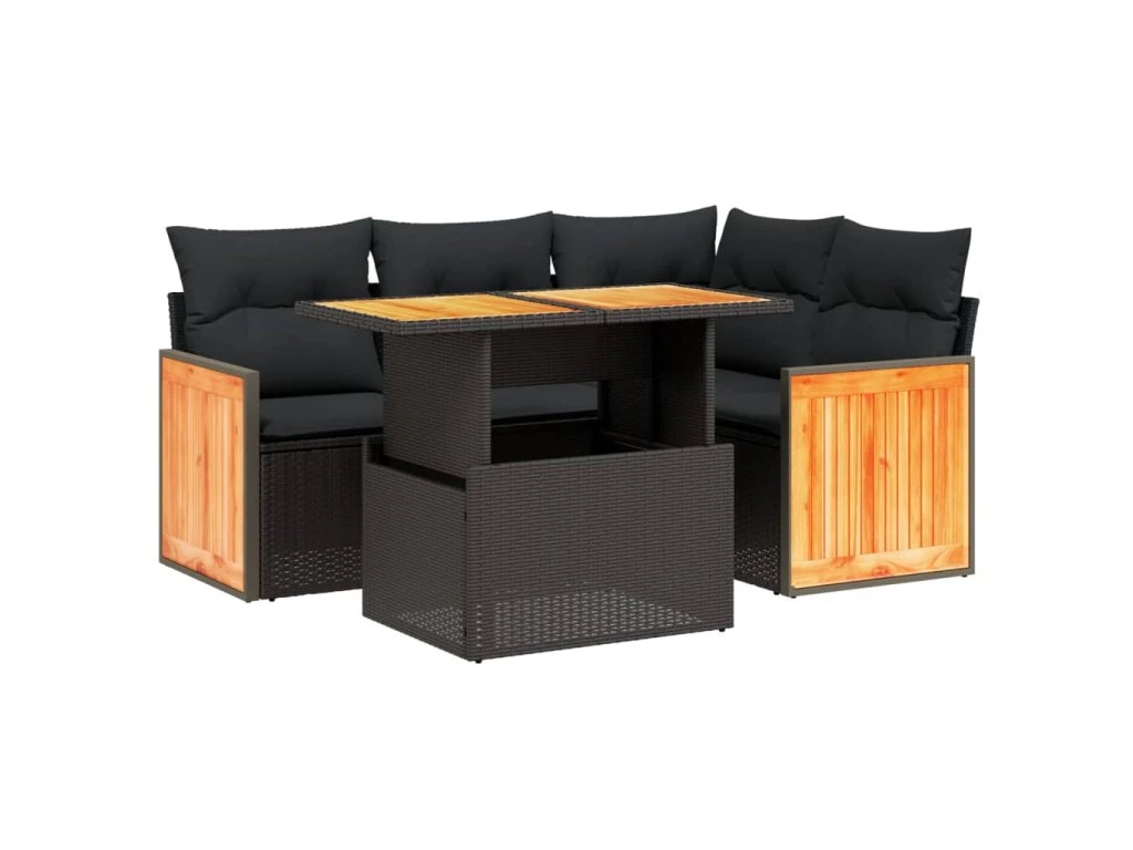 5dílná zahradní sedací souprava s poduškami černá polyratan 3273939