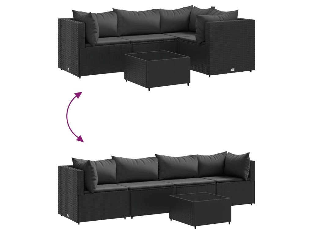 5dílná zahradní sedací souprava s poduškami černá polyratan 3308011
