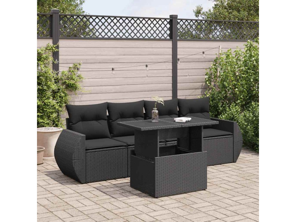 5dílná zahradní sedací souprava s poduškami černá polyratan 3326556