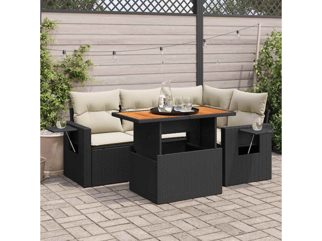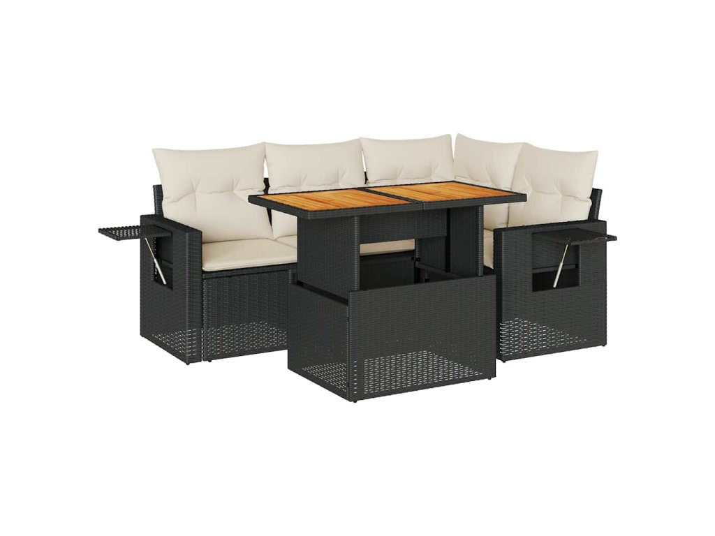 5dílná zahradní sedací souprava s poduškami černá polyratan 3327143