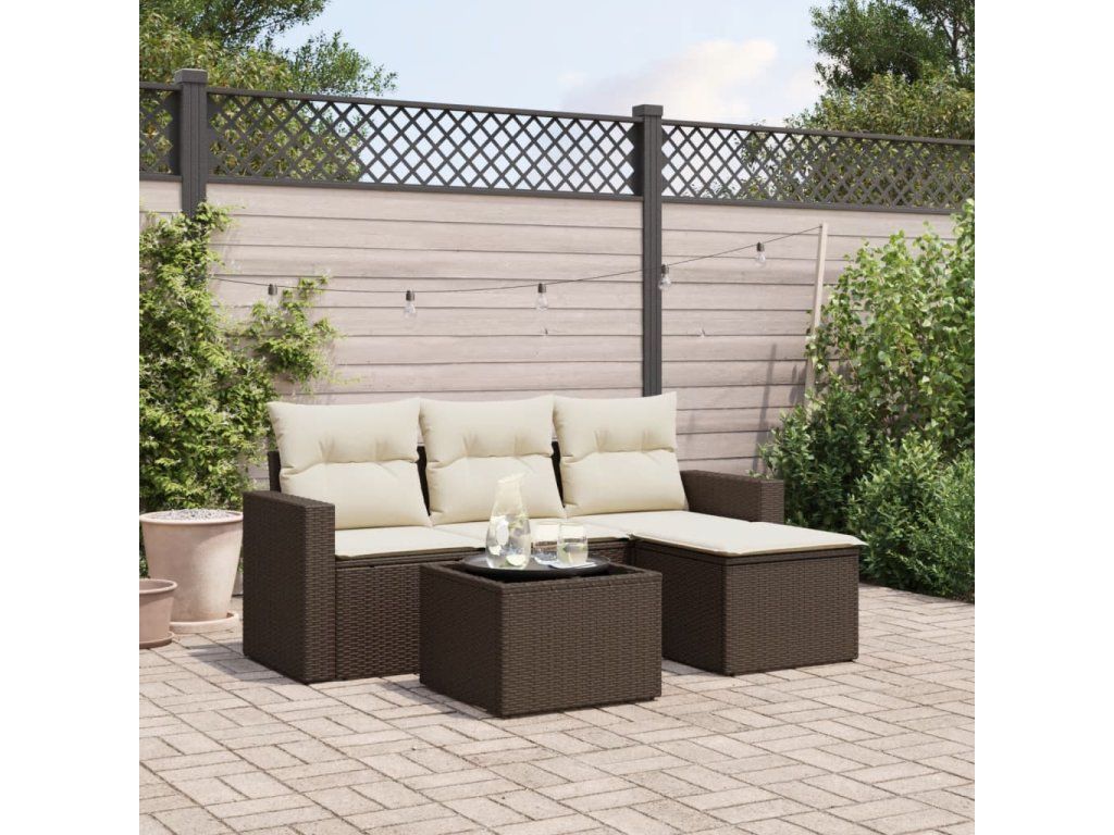 5dílná zahradní sedací souprava s poduškami hnědá polyratan 3218873