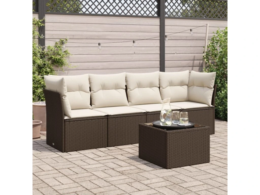 5dílná zahradní sedací souprava s poduškami hnědá polyratan 3249082