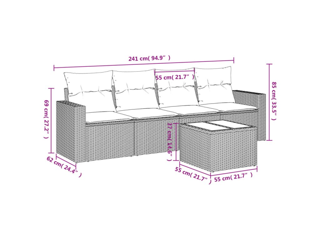 Tato zahradní sedací souprava je dokonalým doplňkem vaší zahrady, terasy nebo dvorku a poskytne vám pohodlné a příjemné místo, kde si můžete povídat s rodinou a přáteli nebo jen tak odpočívat a užívat si pobyt venku.