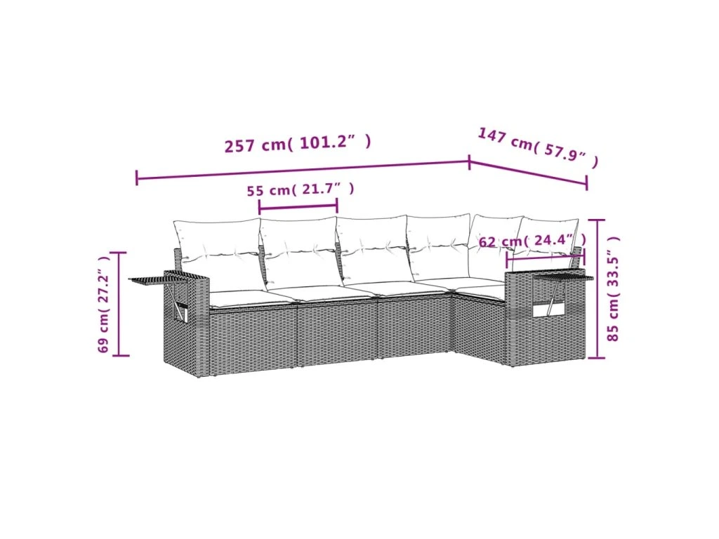 Tato zahradní sedací souprava je dokonalým doplňkem vaší zahrady, terasy nebo dvorku a poskytne vám pohodlné a příjemné místo, kde si můžete povídat s rodinou a přáteli nebo jen tak odpočívat a užívat si pobyt venku.