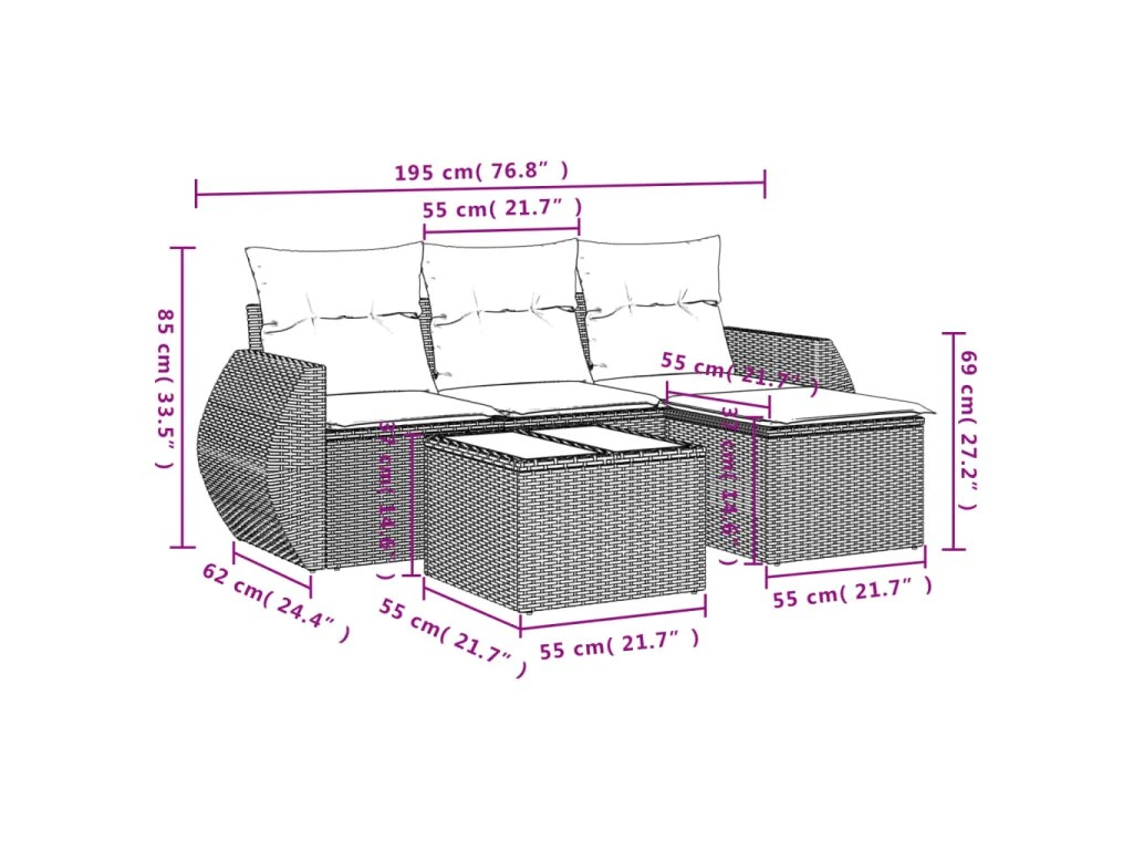 Tato zahradní sedací souprava je dokonalým doplňkem vaší zahrady, terasy nebo dvorku a poskytne vám pohodlné a příjemné místo, kde si můžete povídat s rodinou a přáteli nebo jen tak odpočívat a užívat si pobyt venku.