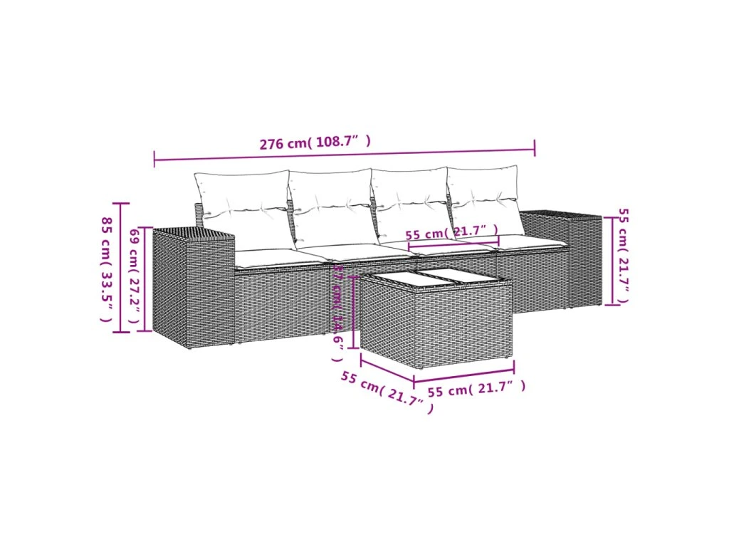 Tato zahradní sedací souprava je dokonalým doplňkem vaší zahrady, terasy nebo dvorku a poskytne vám pohodlné a příjemné místo, kde si můžete povídat s rodinou a přáteli nebo jen tak odpočívat a užívat si pobyt venku.