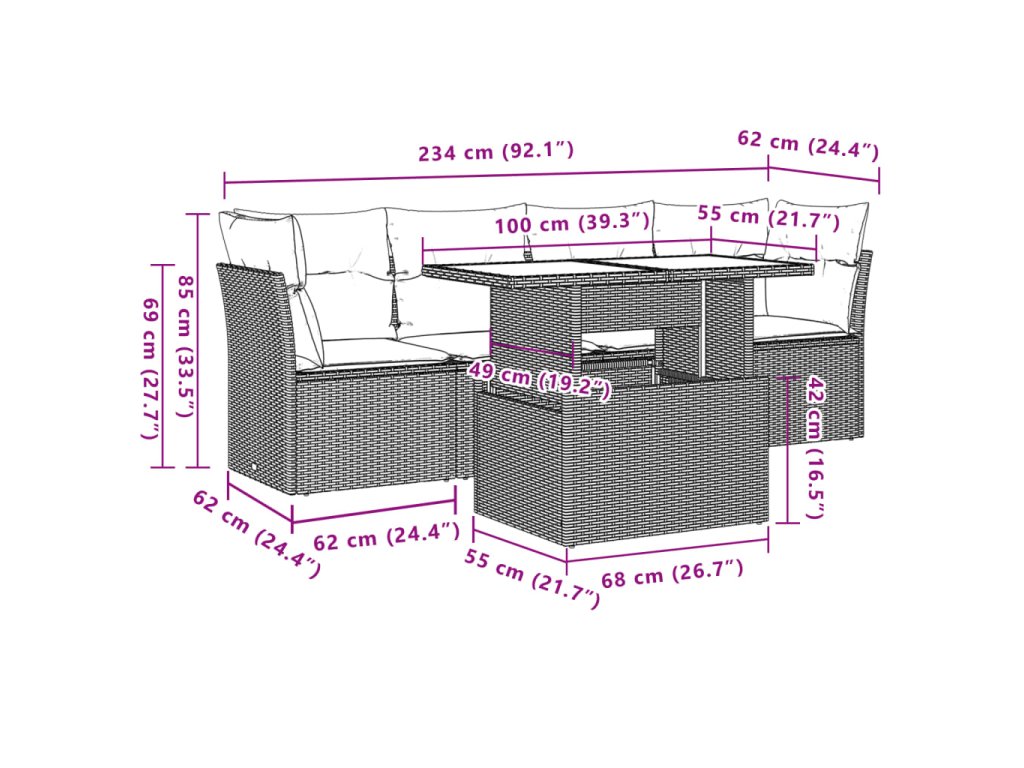 Tato zahradní sedací souprava je dokonalým doplňkem vaší zahrady, terasy nebo dvorku a poskytne vám pohodlné a příjemné místo, kde si můžete povídat s rodinou a přáteli nebo jen tak odpočívat a užívat si pobyt venku.