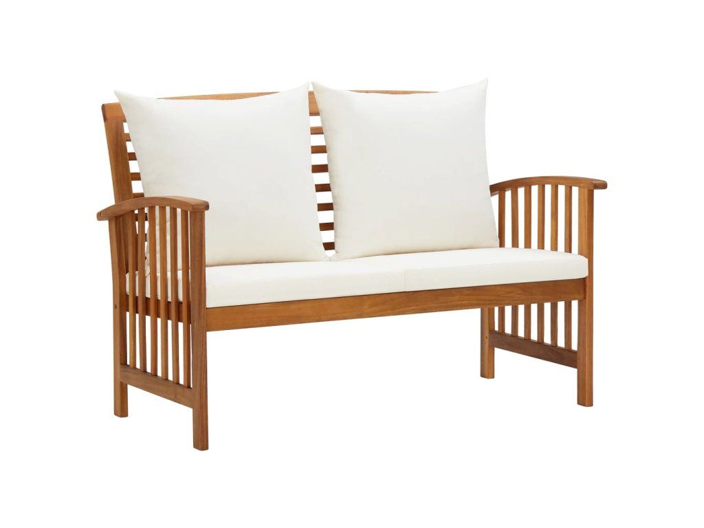 Set zahradního nábytku je zhotovený z masivního akáciového dřeva s olejovou úpravou, je stabilní a má dlouhou životnost. Tlusté podušky na sedák a opěradlo poskytují měkké posezení. Konferenční stolek s masivní dřevěnou stolní deskou s lamelovým designem poslouží jako perfektní odkládací plocha pro vaše občerstvení, mísy s ovocem, dekorativní předměty a další nezbytnosti. Na lavičce a židlích s lehce zaobleným opěradlem a loketními opěrkami se velmi pohodlně sedí.