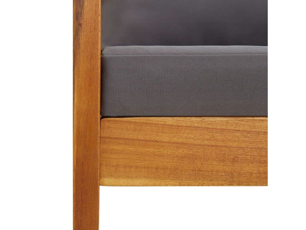 Set zahradního nábytku je zhotovený z masivního akáciového dřeva s olejovou úpravou, je stabilní a má dlouhou životnost. Tlusté podušky na sedák a opěradlo poskytují měkké posezení. Konferenční stolek s masivní dřevěnou stolní deskou s lamelovým designem poslouží jako perfektní odkládací plocha pro vaše občerstvení, mísy s ovocem, dekorativní předměty a další nezbytnosti. Na židlích s lehce zaobleným opěradlem a loketními opěrkami se velmi pohodlně sedí.