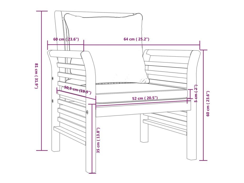 - Materiál: masivní akáciové dřevo s olejovou povrchovou úpravou, textil (100% polyester)