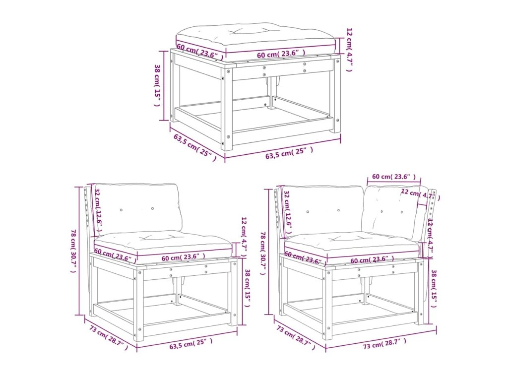- Rozměry podušky na sedák: 60 x 60 x 12 cm (D x Š x T)